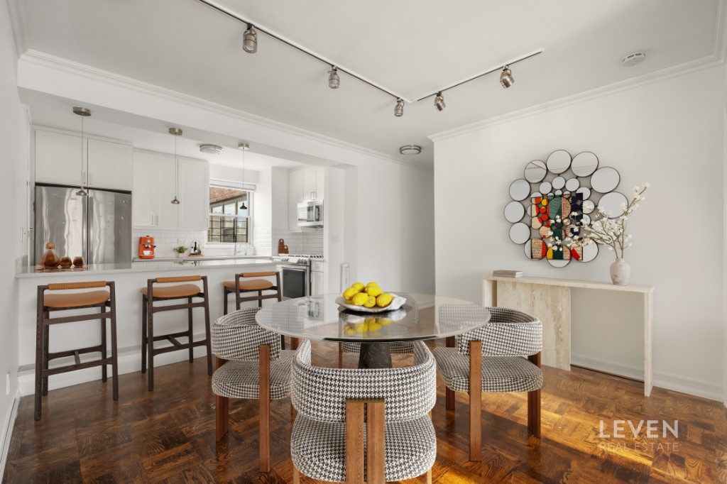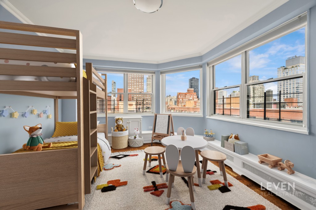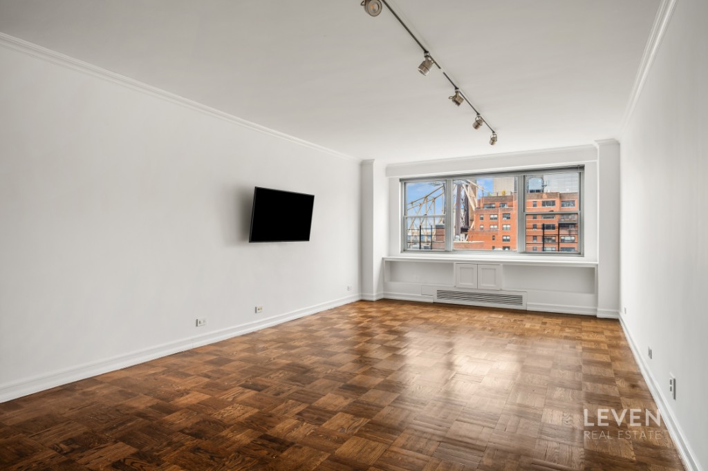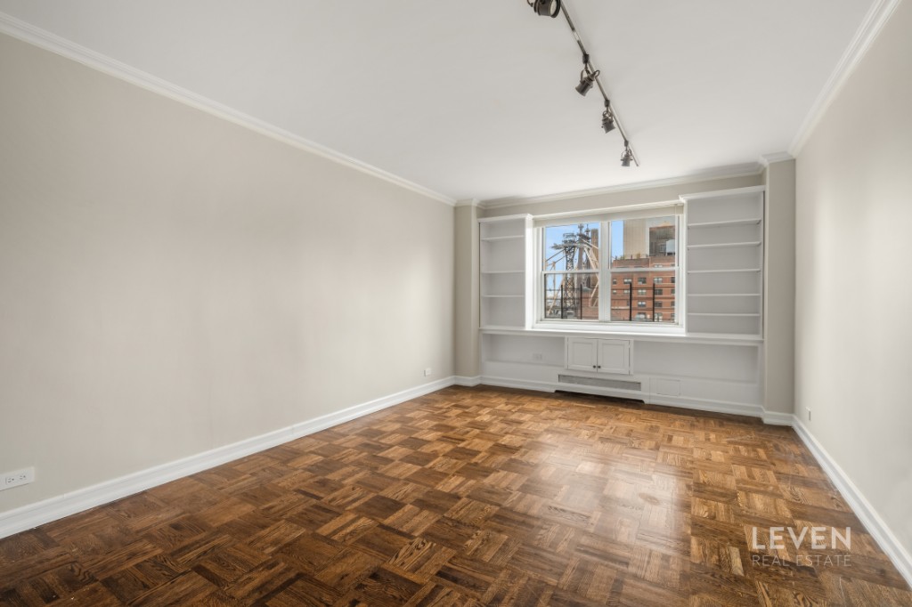 Sun-filled 3-bedroom, 2-bath corner residence on the 17th floor of the full-service, pet-friendly York River House this beautifully renovated home features custom built-ins and molding, designer lighting, hardwoods throughout, and offers views of the East River, Chrysler Building, and the NYC skyline. The oversized living room provides the perfect setting for entertaining and is adjacent to a spacious dining area and the open windowed kitchen. Equipped with premium stainless steel appliances, the kitchen has a five-burner cooktop, dishwasher, quartz countertops, a breakfast bar, and ample custom cabinetry, including a pantry. The king-sized primary suite is complete with a custom walk-in closet, built-ins, and a sleek ensuite bath with a glass-enclosed shower. The second bedroom benefits from two exposures, has a wall of windows for fantastic light, and is complete with a custom closet while the third bedroom features charming custom details and excellent closet space. Situated between the second and third bedrooms, the secondary bath has a window and a full-sized tub, with two closets just adjacent, and there is a large additional closet in the foyer.