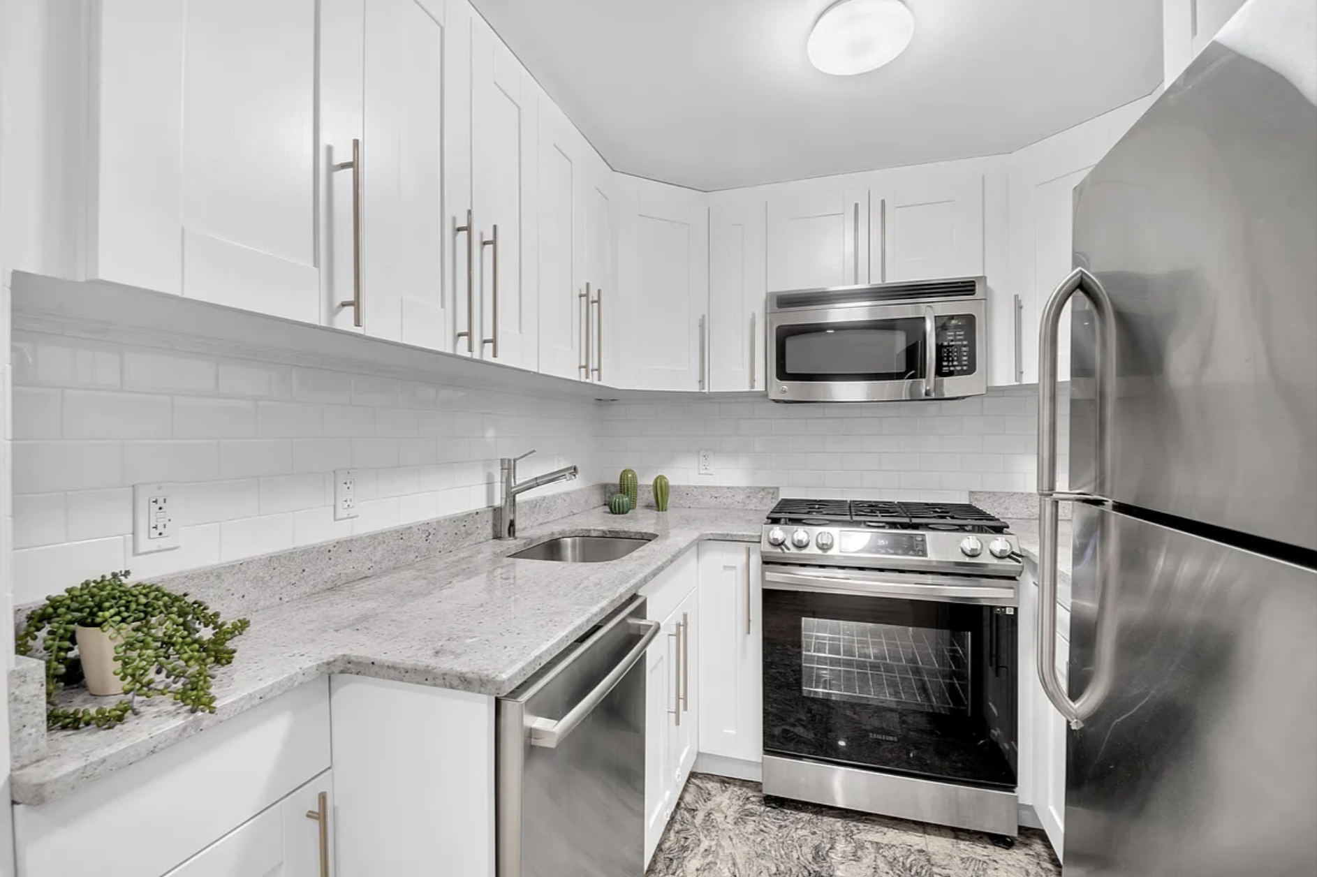 Step inside this bright and airy home, currently configured as a two-bedroom facing the garden. The upper level features an open living and dining area that flows seamlessly into a well-appointed kitchen with ample storage, along with one bedroom and a full bath.