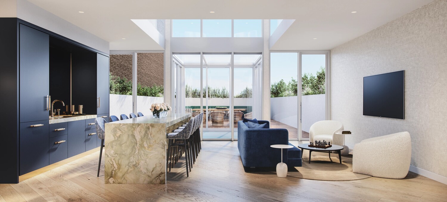 Additional highlights include abundant Elfa-outfitted closet space and an in-unit Miele washer and dryer.