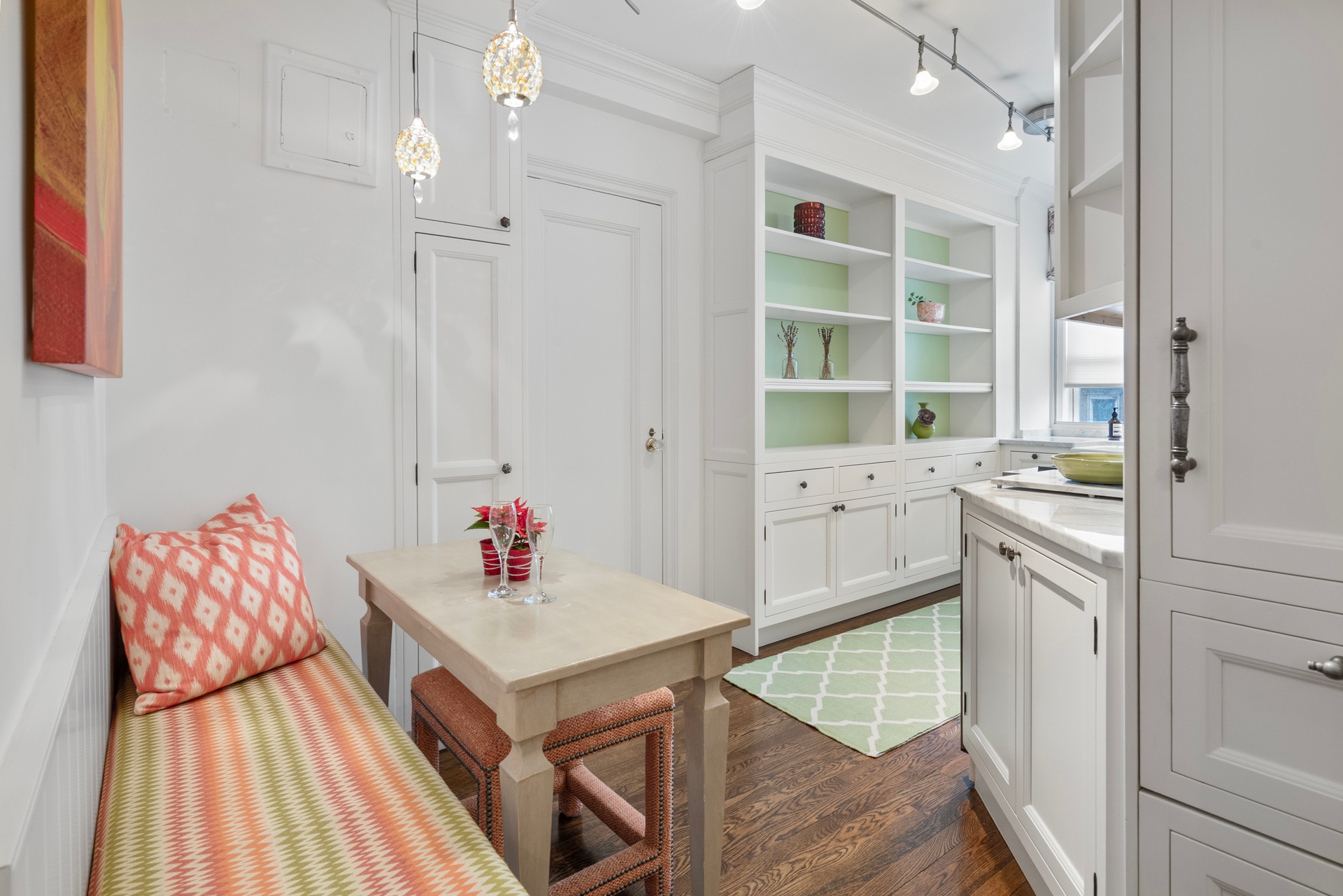 Welcome home to Residence 4C — a beautifully renovated, corner, pre-war two-bedroom, two-bath cooperative showcasing gorgeous herringbone floors, high beamed ceilings, a hand-crafted decorative fireplace, and iconic views of the Queensboro Bridge from oversized, double-pane, pin-drop-quiet north- and west-facing windows. Sun-filled and generously scaled, this inviting home is rich with pre-war charm and truly move-in ready. All you need is your toothbrush. Enter through an elegant foyer accented by a graceful archway that opens into a well-proportioned living room with a designated dining area — ideal for entertaining or enjoying quiet evenings at home. The charming, west-facing, windowed eat-in kitchen features custom banquette seating perfect for cozy breakfasts. It is outfitted with top-of-the-line appliances, including a Wolf range, Sub-Zero refrigerator and wine fridge, and a Fisher & Paykel dishwasher. Carrara marble countertops and an Ann Sacks glass tile backsplash complete this thoughtfully designed culinary space. Throughout the residence, custom built-ins and California Closets provide exceptional storage and convenience. Both bedrooms are en-suite with windowed bathrooms that have been tastefully renovated with high-end fixtures, enhancing the home’s refined and sophisticated ambiance. This light-filled home offers through-the-wall air conditioning, and the monthly maintenance includes electricity and basic cable for added value and ease. 400 East 59th Street, designed by Van Wart and Wein in 1928, is a full-service pre-war cooperative featuring a 24-hour doorman, live-in superintendent, laundry room, bike room, and a serene garden tucked just off the lobby. Ideally situated in Sutton Place, the building offers easy access to transportation (N/R/W/4/5/6 lines), superb dining options, and premier shopping — including Trader Joe’s across the street, Whole Foods nearby, and fitness destinations such as Crunch and Equinox. The building permits 75% financing, imposes no flip tax, is pet-friendly, and allows pieds-a`-terre and sublets. The co-op is composed of 120 units divided between two towers. Contact us today to schedule a private showing — this residence is truly exceptional and will not last.